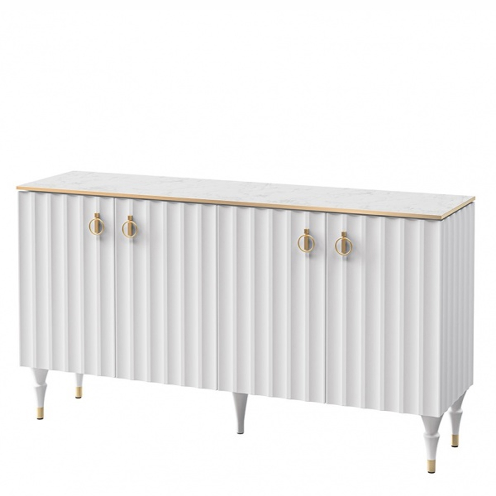Консоль четырёхдверная с белым рельефным фасадом Expanses of Beauty Белый Золотой Белый Мрамор Bianco в Ижевске | Loft Concept