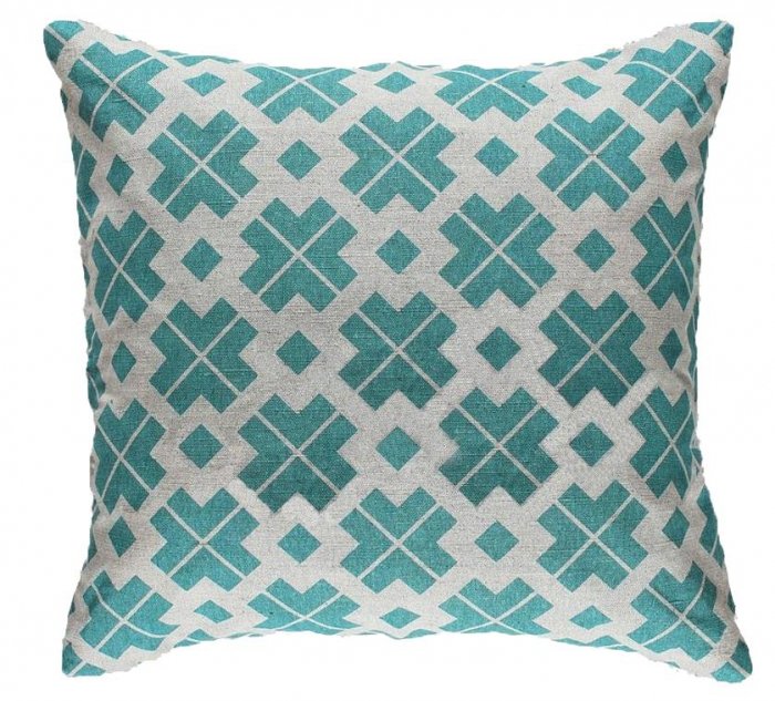 Декоративная Подушка бирюзовая геометрический орнамент