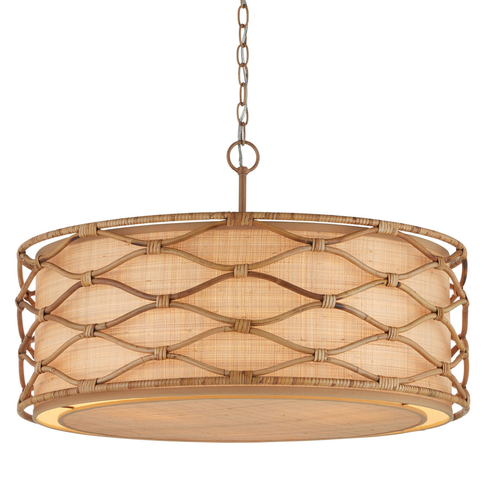 Подвесной светильник  из кованого железа и абажуром из ротанга Wicker Furniture Светло-коричневый  Бежевый в Ижевске | Loft Concept