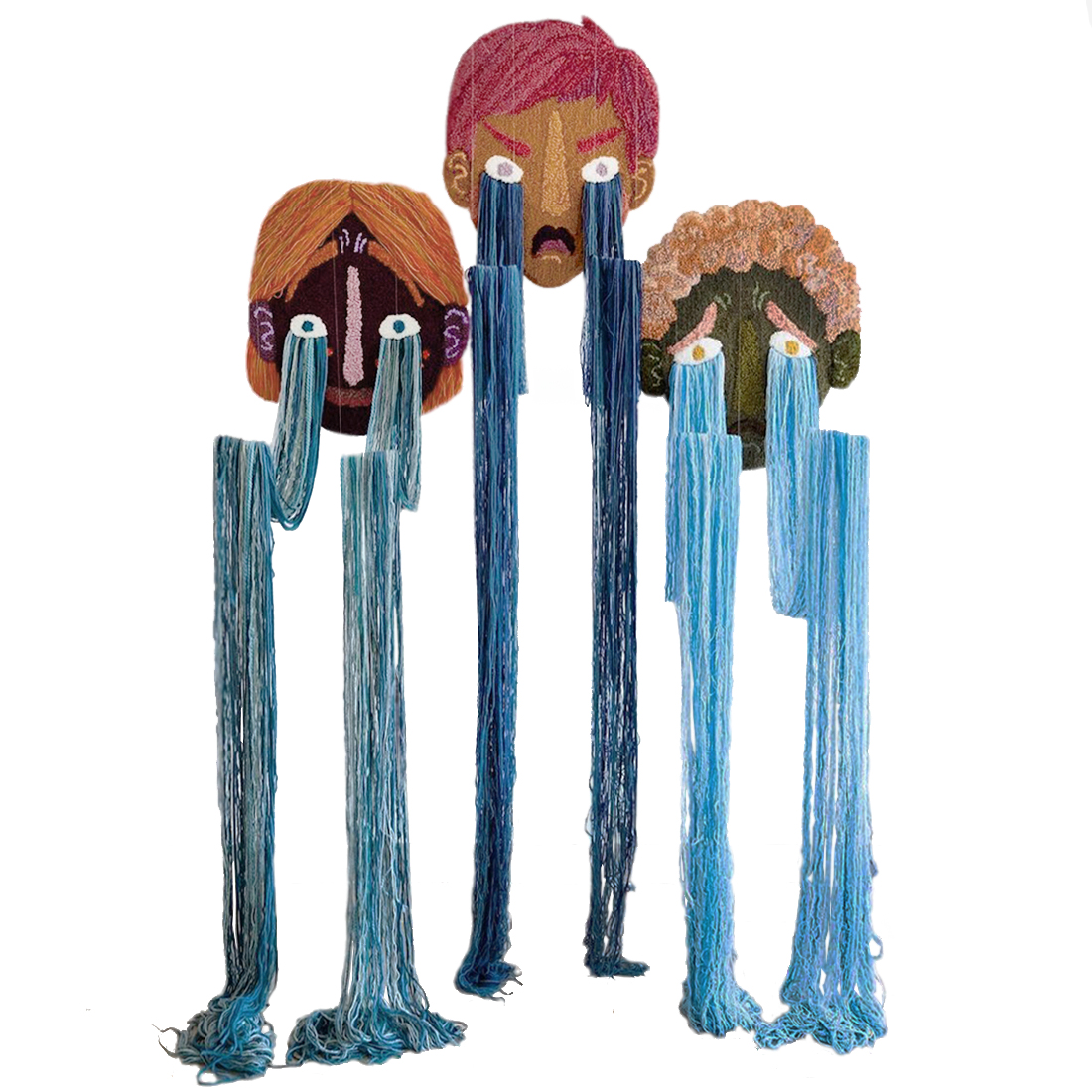 Вязаный Арт-Объект на стену из трех элементов Triptych Терракотовый Синий в Ижевске | Loft Concept